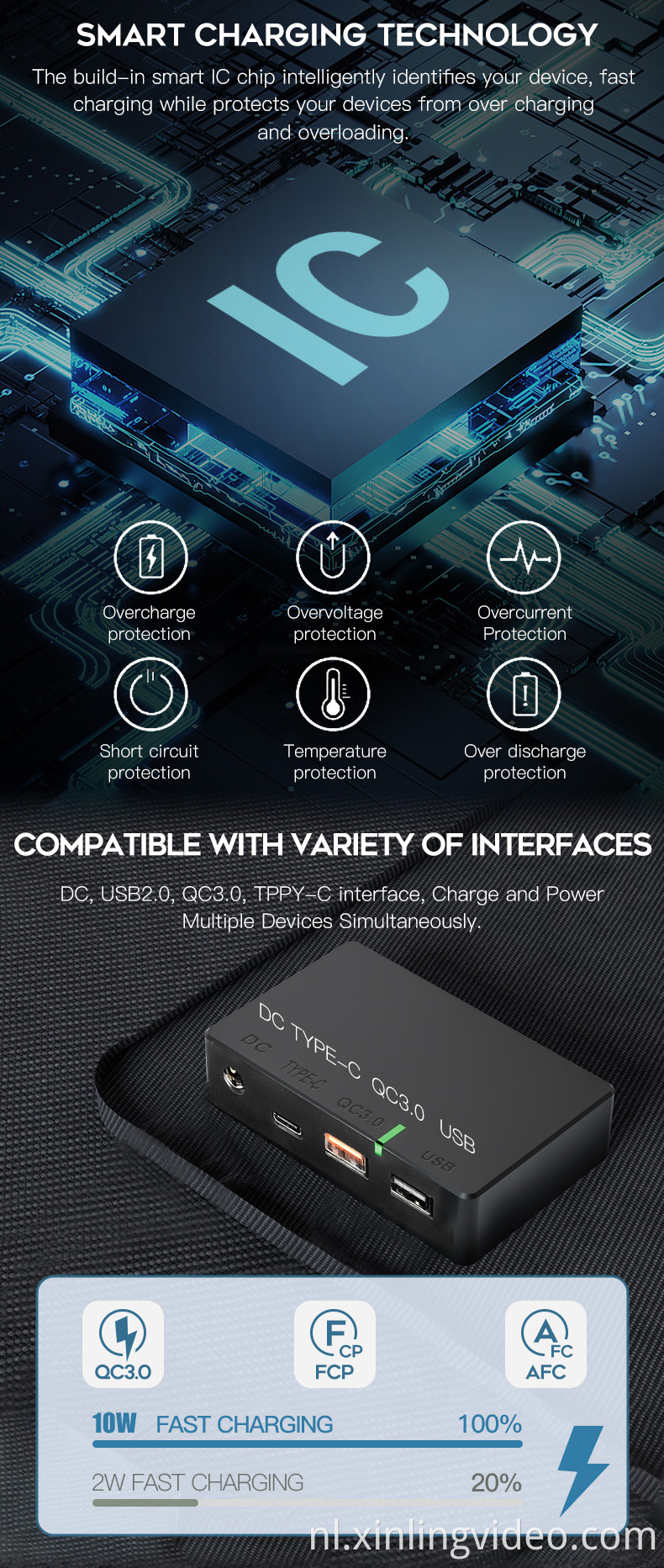 Output Interface: USB2.0 QC3.0 PD DC