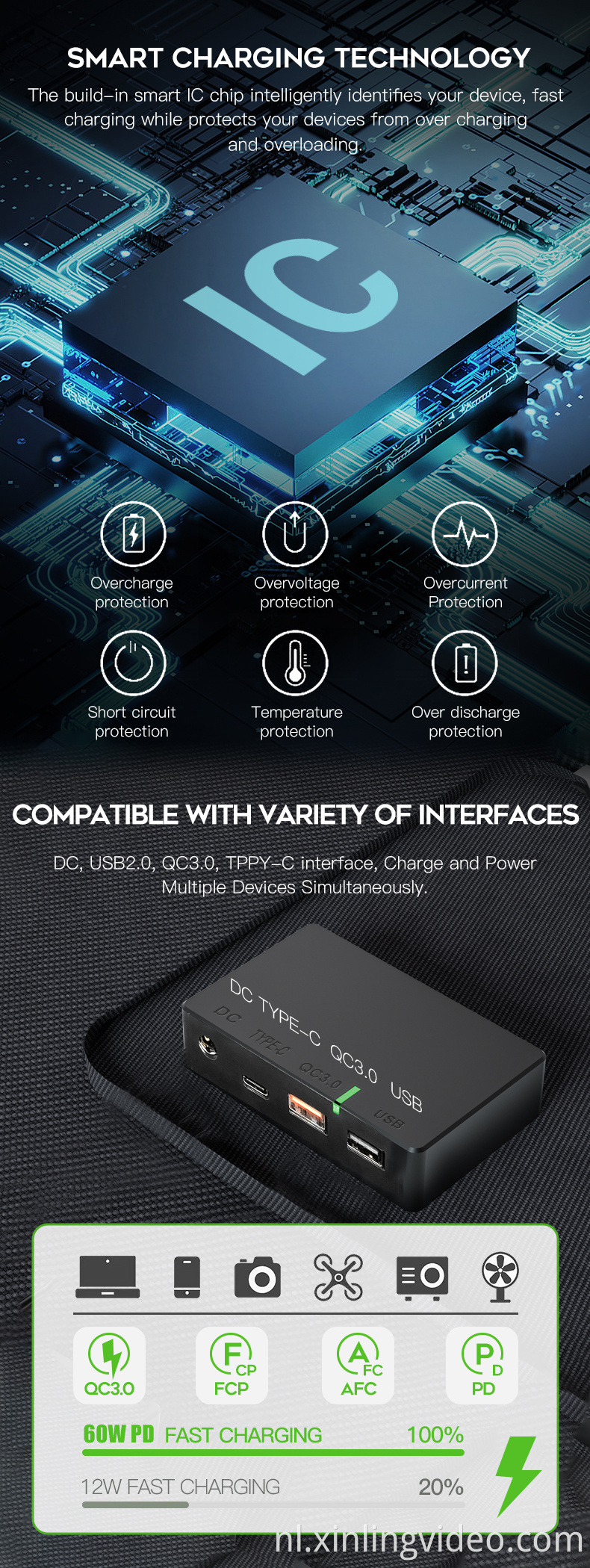 Output Interface: USB2.0 QC3.0 PD DC XT60