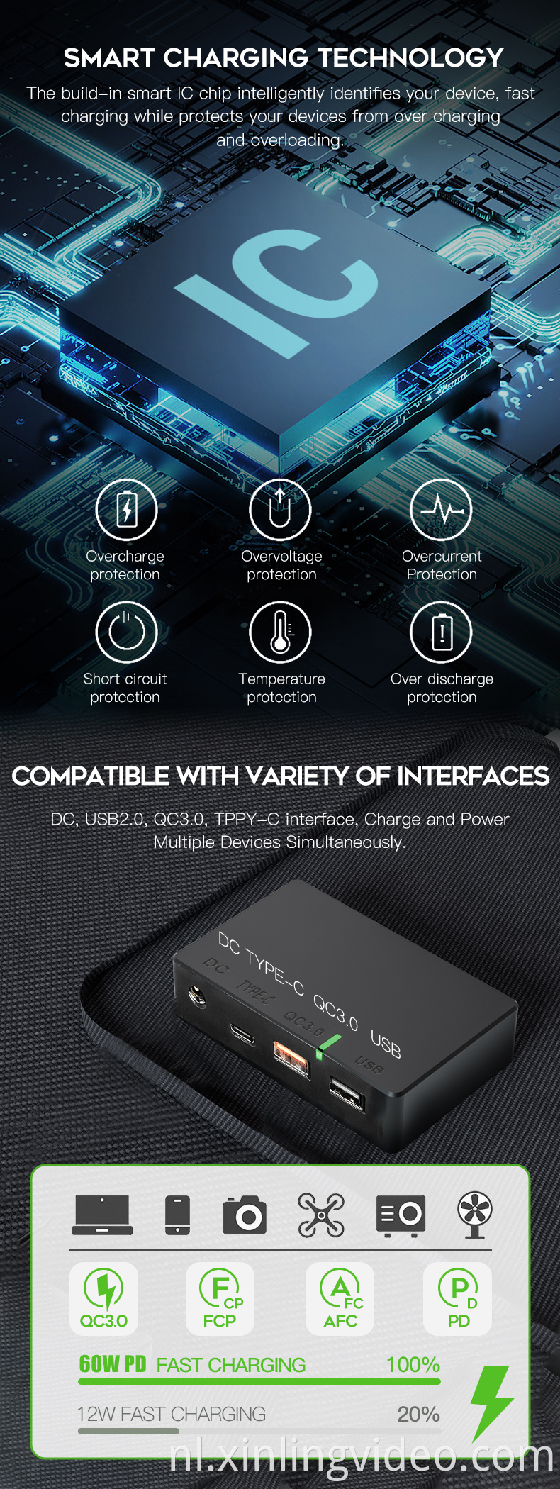 Output Interface: USB2.0 QC3.0 DC PD